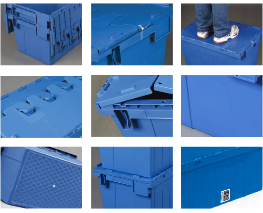 1. 物流箱為可插式、帶連體外翻箱蓋;把手搬運舒服,空箱套入時(shí),把手在外。